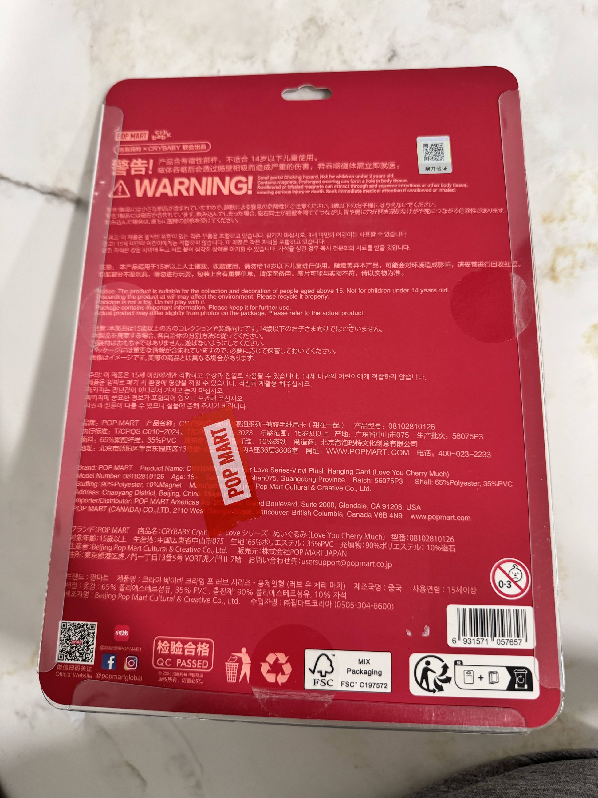 - POP MART CRYBABY Crying For Love Series-Vinyl Plush Hanging Card (Love You Cherry Much): MORE TO LIGHT UP PASSION AND BRING JOY.