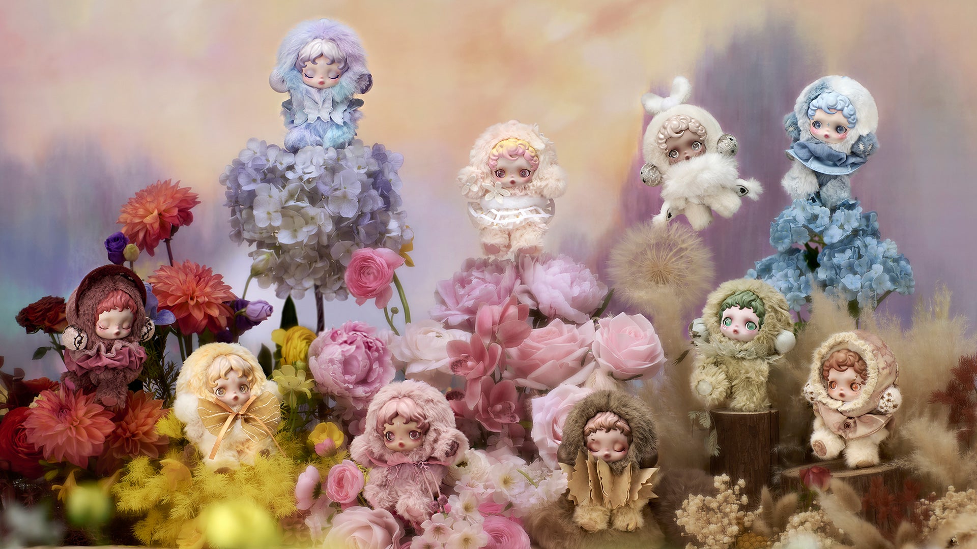 This SKULLPANDA collection brings impressionist-inspired styling to a soft, clip-ready plush format. Each design features a plush body with molded face details in a compact, displayable size.